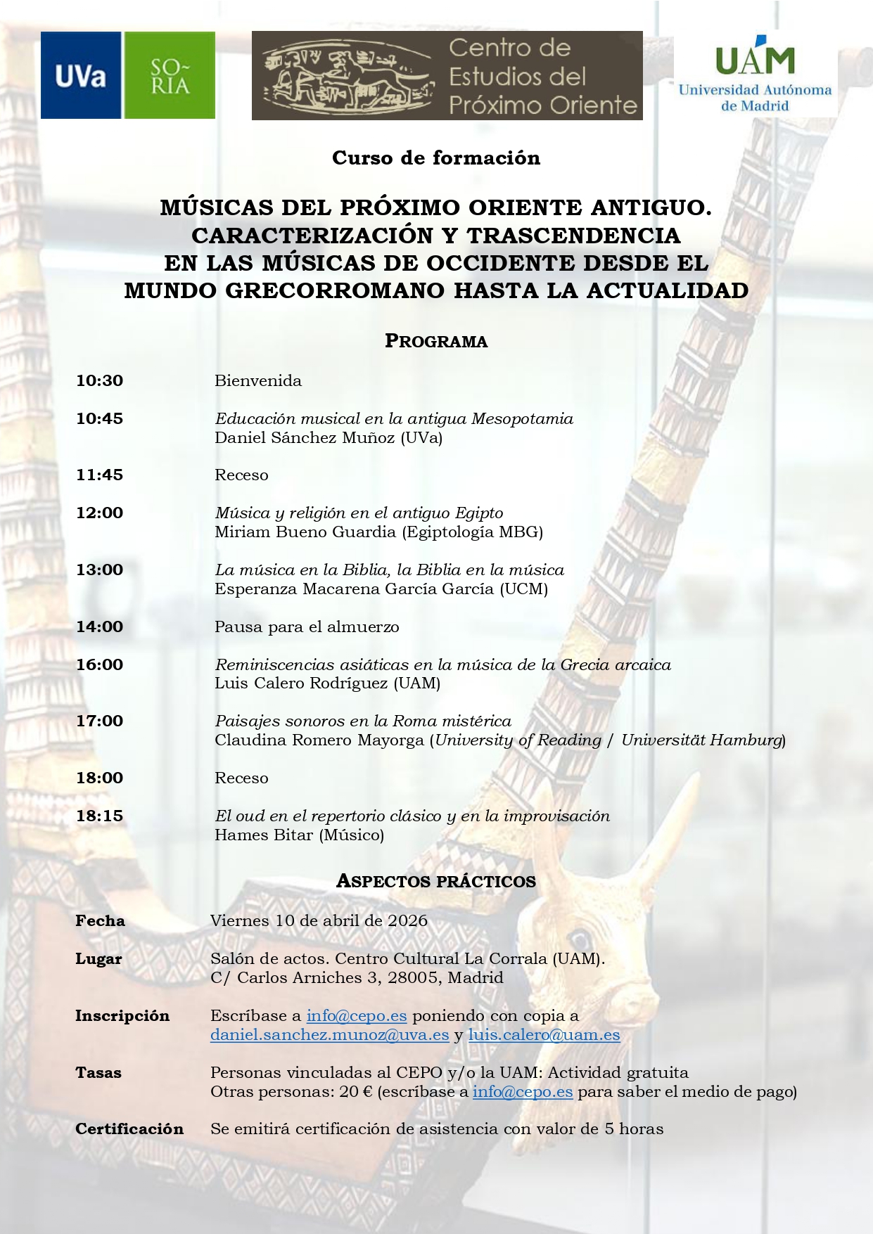 CURSO DE FORMACIÓN: MÚSICAS DEL PRÓXIMO ORIENTE ANTIGUO.